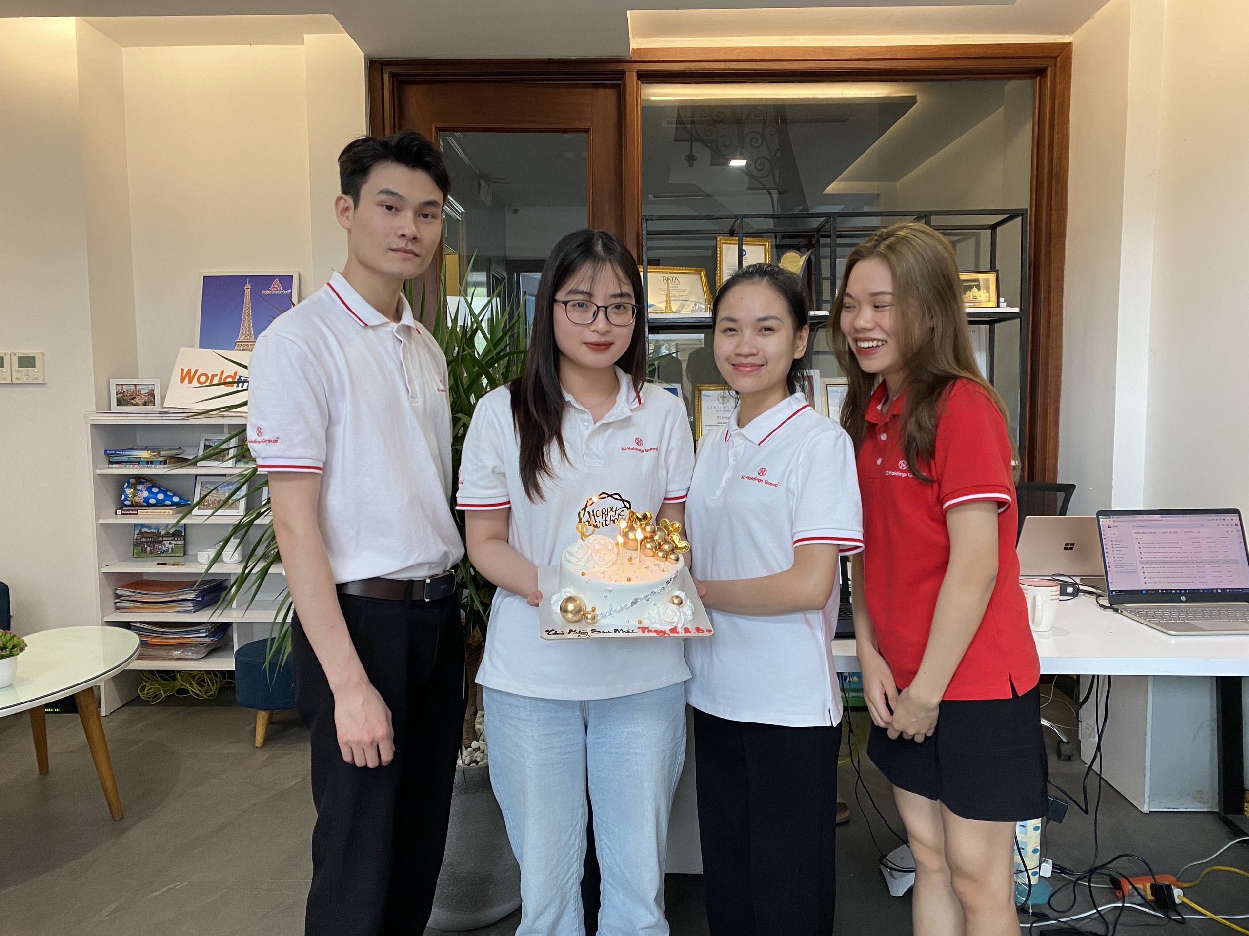 🎁 Vừa qua, World Holdings tổ chức bữa tiệc sinh nhật nho nhỏ dành cho cán bộ nhân viên có sinh nhật vào Tháng 1, Tháng 2 và Tháng 3.😍 Chào mừng các bạn đến với thế giới này, chúc các bạn thêm tuổi mới, thêm sức khỏe và thêm nhiều thành công vượt bậc. Đối với công ty, các bạn luôn là những nhân viên đầy tiềm lực, đầy nhiệt huyết, hãy luôn luôn phấn đấu tích cực như vậy để góp phần cho sự phát triển của công ty nhé.💝 Thành công sẽ đến với những người biết phấn đấu và nỗ lực không ngừng, cảm ơn các bạn vì những cống hiến dành cho công ty trong thời gian qua, hy vọng các bạn sẽ có những bứt phá vượt bậc trong thời gian tới.Happy birthday to you! 🎉🎁🎊🎂
